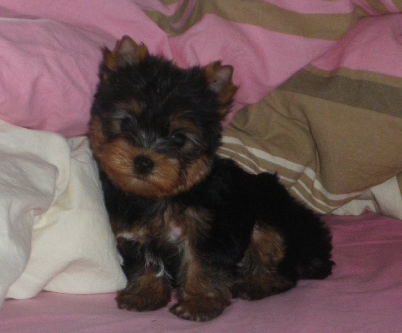 La petite titoune de cette portée.Guère plus de 1Kg5 à l'age adulte. Photo à 6 semaines. Ne sera pas disponible avant février.